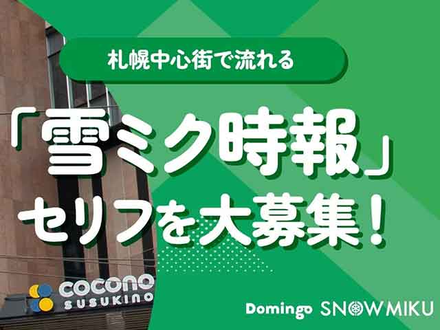 北海道札幌市のランドマーク「COCONO SUSUKINO」で毎日放映中の「雪ミク時報」がリニューアル!『雪ミク』に喋ってほしい45文字以内のセリフを一般公募し、あなたの言葉で北海道を盛り上げるチャンスです。 アットプレス
