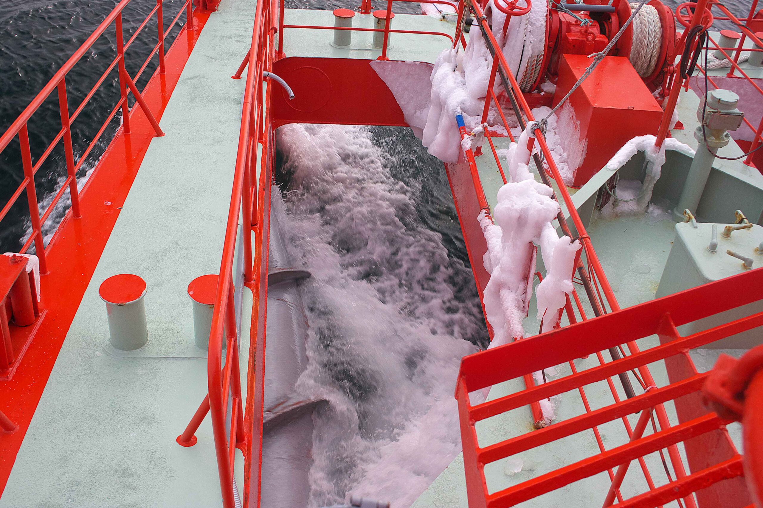 しかし、ガリガリと音を立てて流氷を砕きながら進む様子を間近で見たいという気持ちが勝り、意を決して屋外の氷を砕く様子がよく見えるデッキへ向かったのです。
