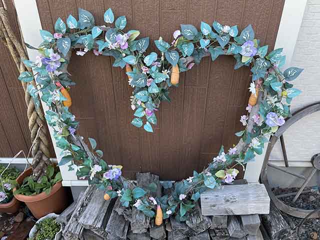木を組んだ大きなハートに海老フライのモチーフがアクセントになっていて、決して趣味が良いとは思いませんが、思わず写真を撮りたくなる存在感。