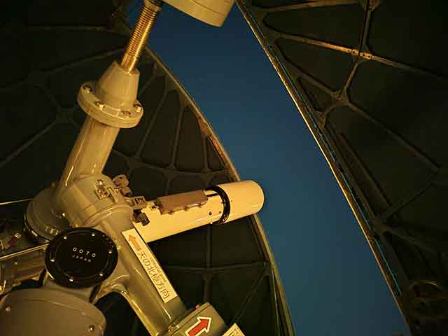 天文台でひときわ目を引くのは、入り口の階段を登ってすぐの場所にある巨大な望遠鏡でしょうか。
